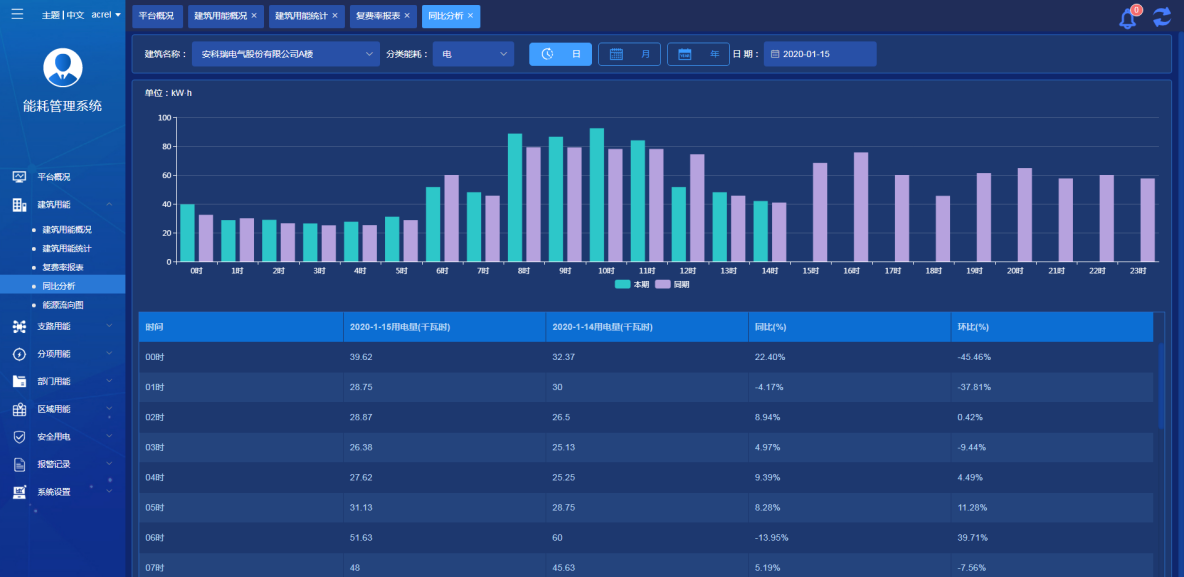 ¿ÉÑ¡ÔñÉó²éÄ¿½ñÐÞ½¨ÓÃÄÜÊý¾Ýͬ±ÈºÍ»·±ÈÆÊÎö½ÏÁ¿£¬£¬£¬£¬ £¬£¬¿ÉÑ¡ÔñÈÕ/ÔÂ/ÄêÖÜÆÚ¾ÙÐбÈÕÕ£¬£¬£¬£¬ £¬£¬Í¨¹ýÖù״ͼºÍ°Ù·Ö±ÈÊý¾ÝÏÔʾ±ÈÕÕЧ¹û¡£¡£ ¡£¡£¡£¡£
